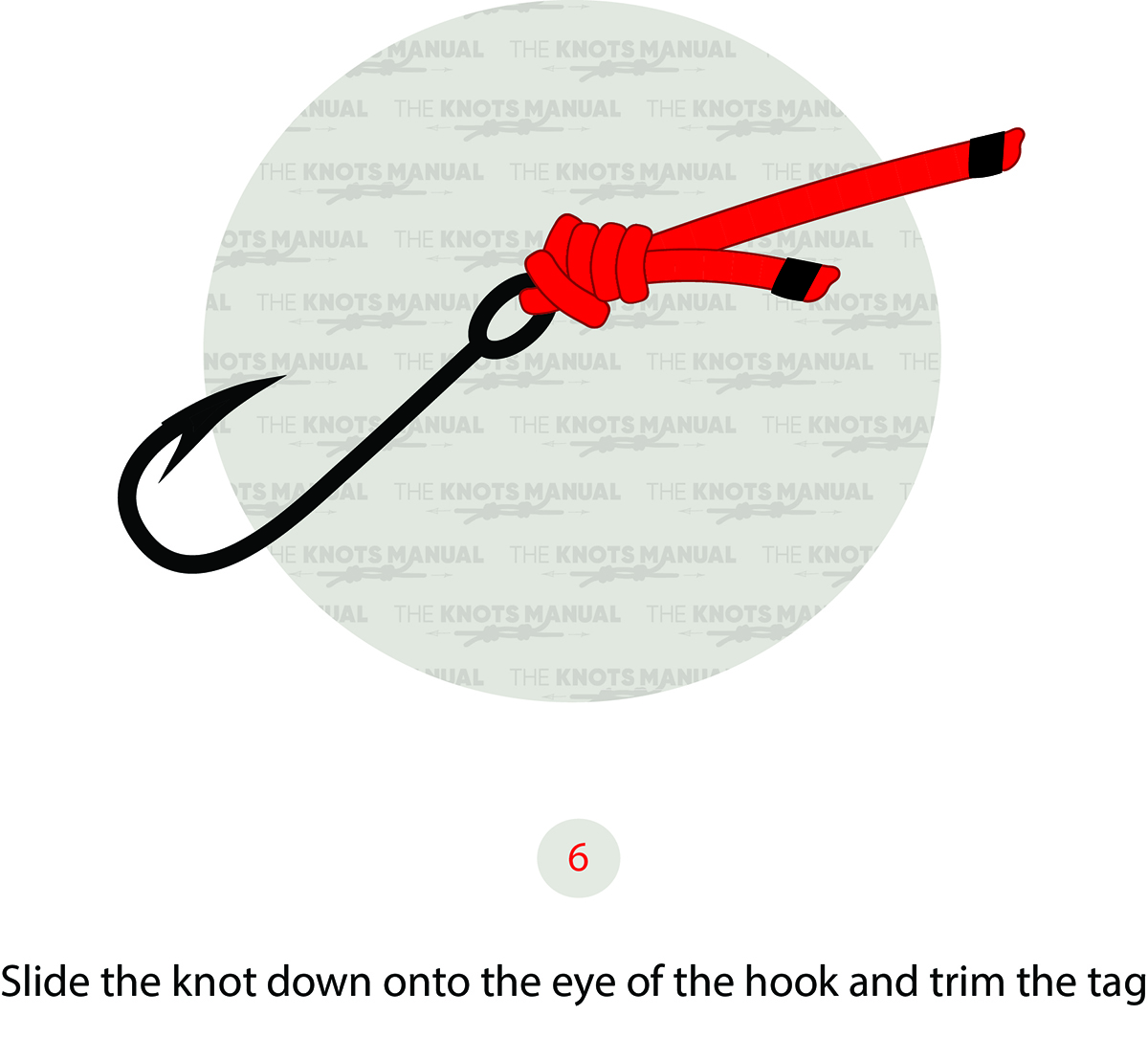Tighten the loop, so that the knot sits next to the eye of the hook, and cut the tag end short to finish the knot.
