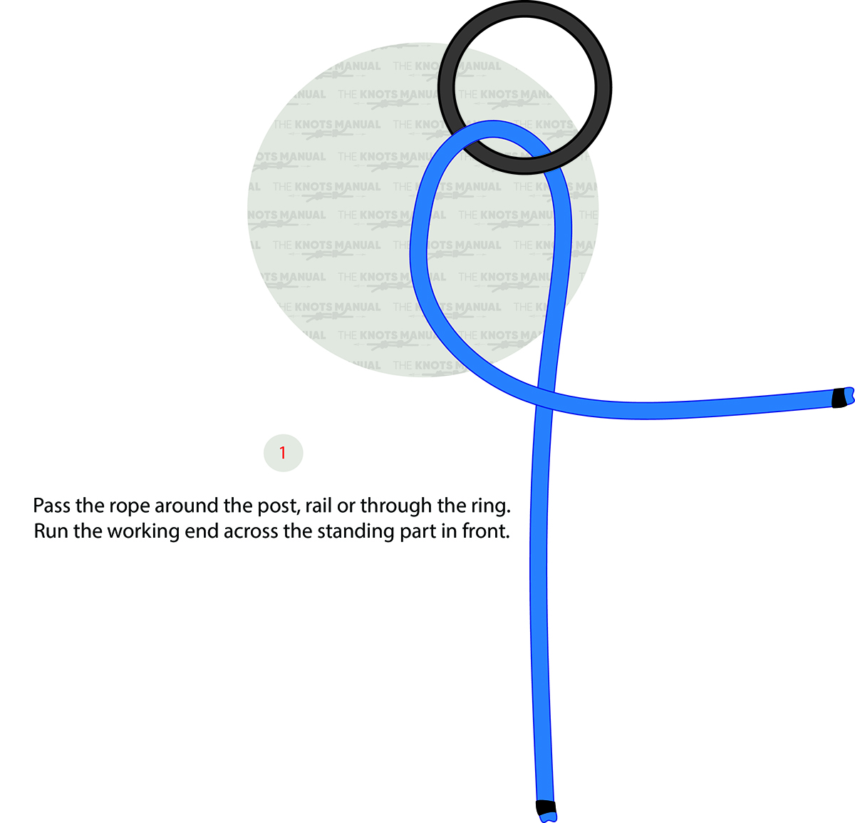 Pass the working end around the post or (in our illustration) through a ring. Then place it over the standing end as illustrated above.