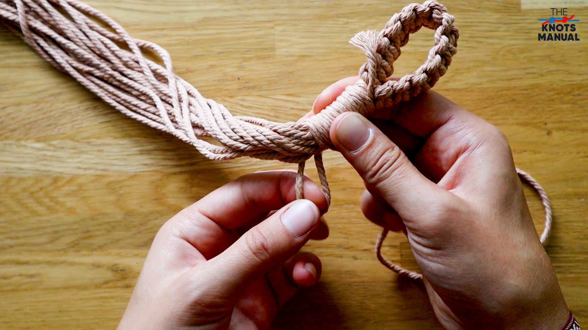 Now tie another 5 Square Knots to form 6 Square Knots in total. The left side of the top loop is now finished.