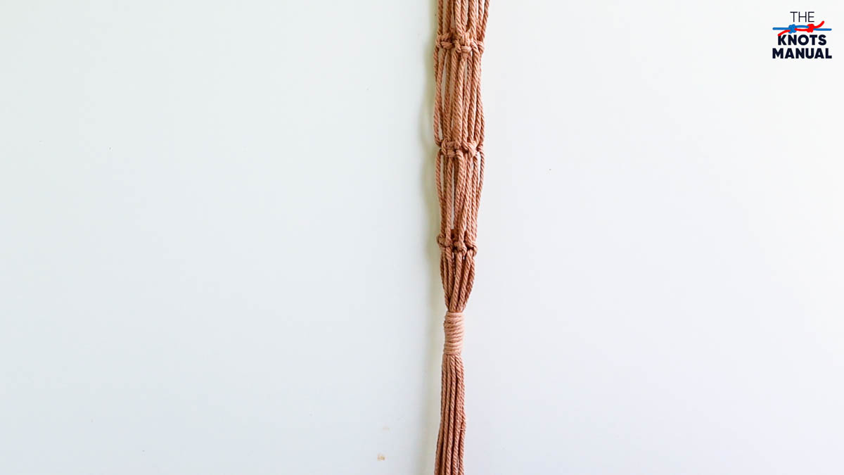 Following the same steps, tie 4 more Square Knots 5 cm (2 inches) lower, by taking 2 strands from one group and 2 from the other one.